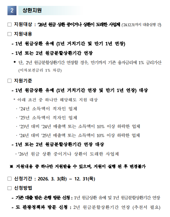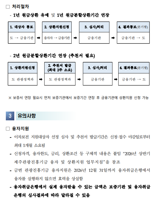 2026년 상반기 제주관광진흥기금 융자 및 상환지원 알림
