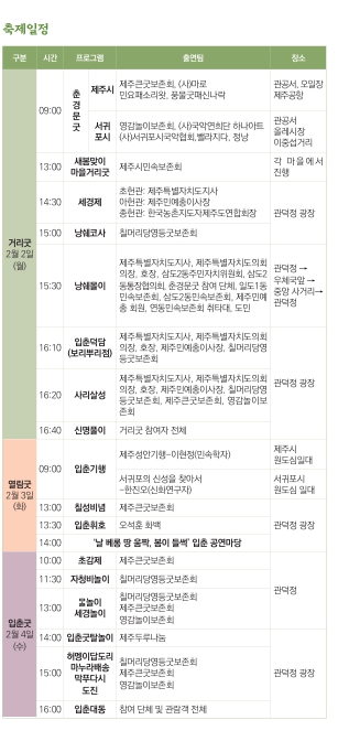 2026 병오년 탐라국 임춘굿 행사 프로그램