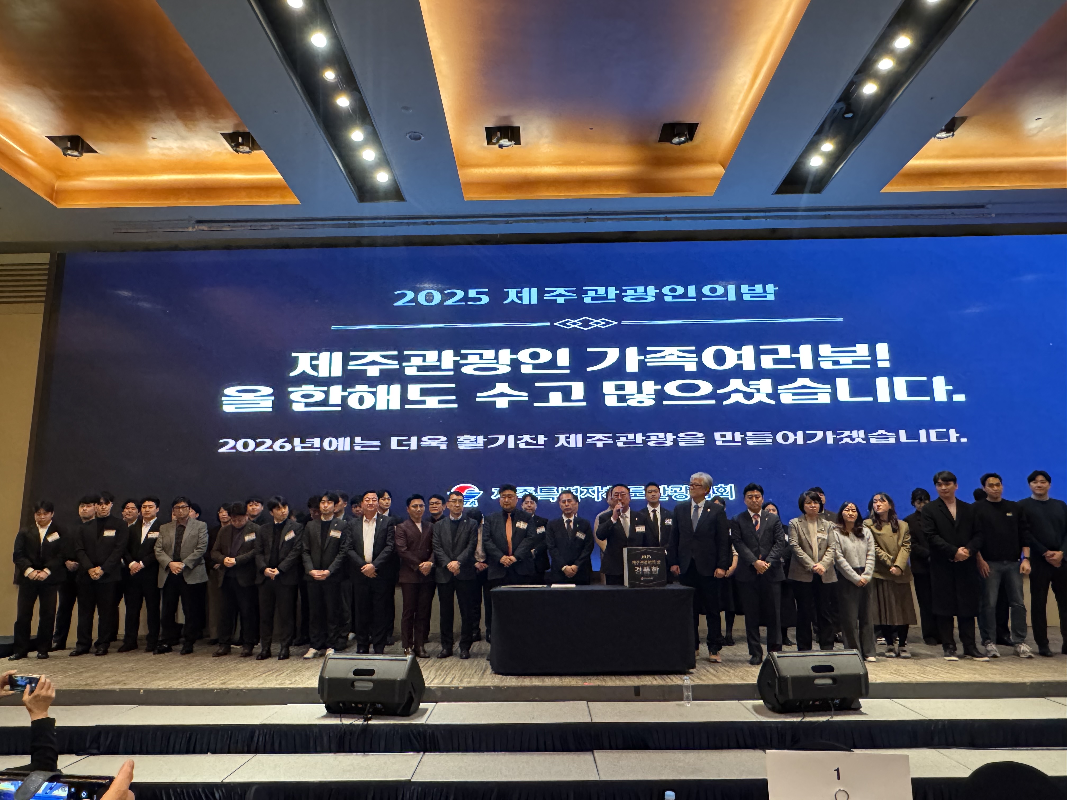 - 제주특별자치도관광협회(회장 강동훈)는 지난 18일 메종글래드호텔에서 올 한해 관광인들의 노고를 격려하기 위한 ‘2025 제주관광인의 밤’행사를 열었다.