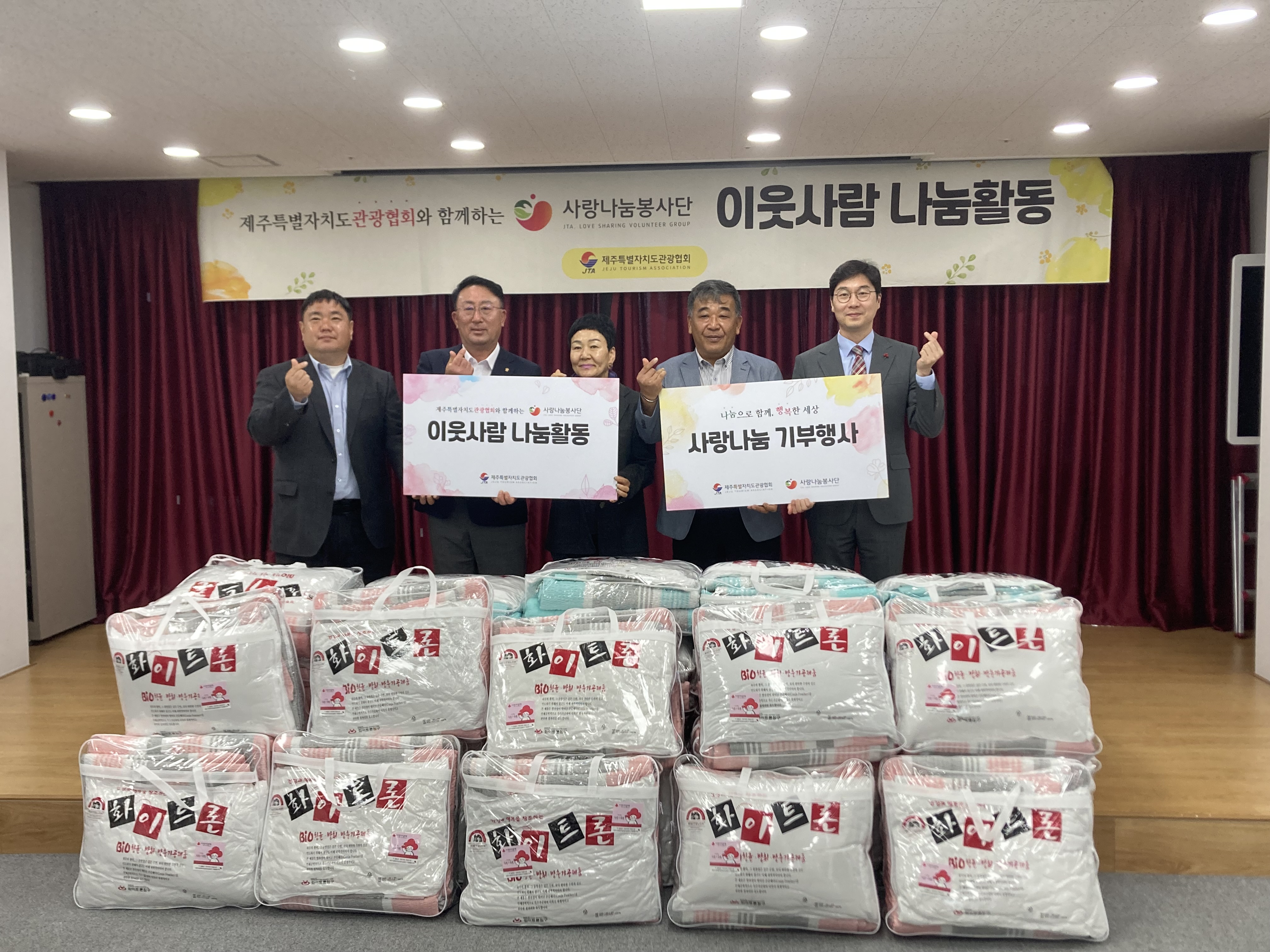  제주특별자치도관광협회(회장 강동훈소속 사랑나눔봉사단(단장 강옥선)은 28일 홀로사는노인복지센터에 여름이불세트 64(300만원 상당)를 전달했다.