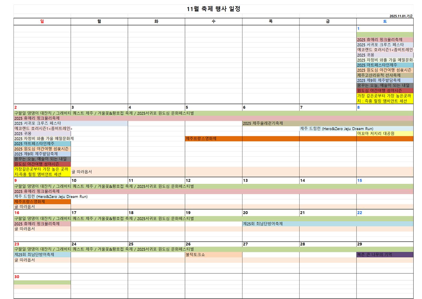 2025년 11월 제주도내 주요행사(2025.11.01. 기준)