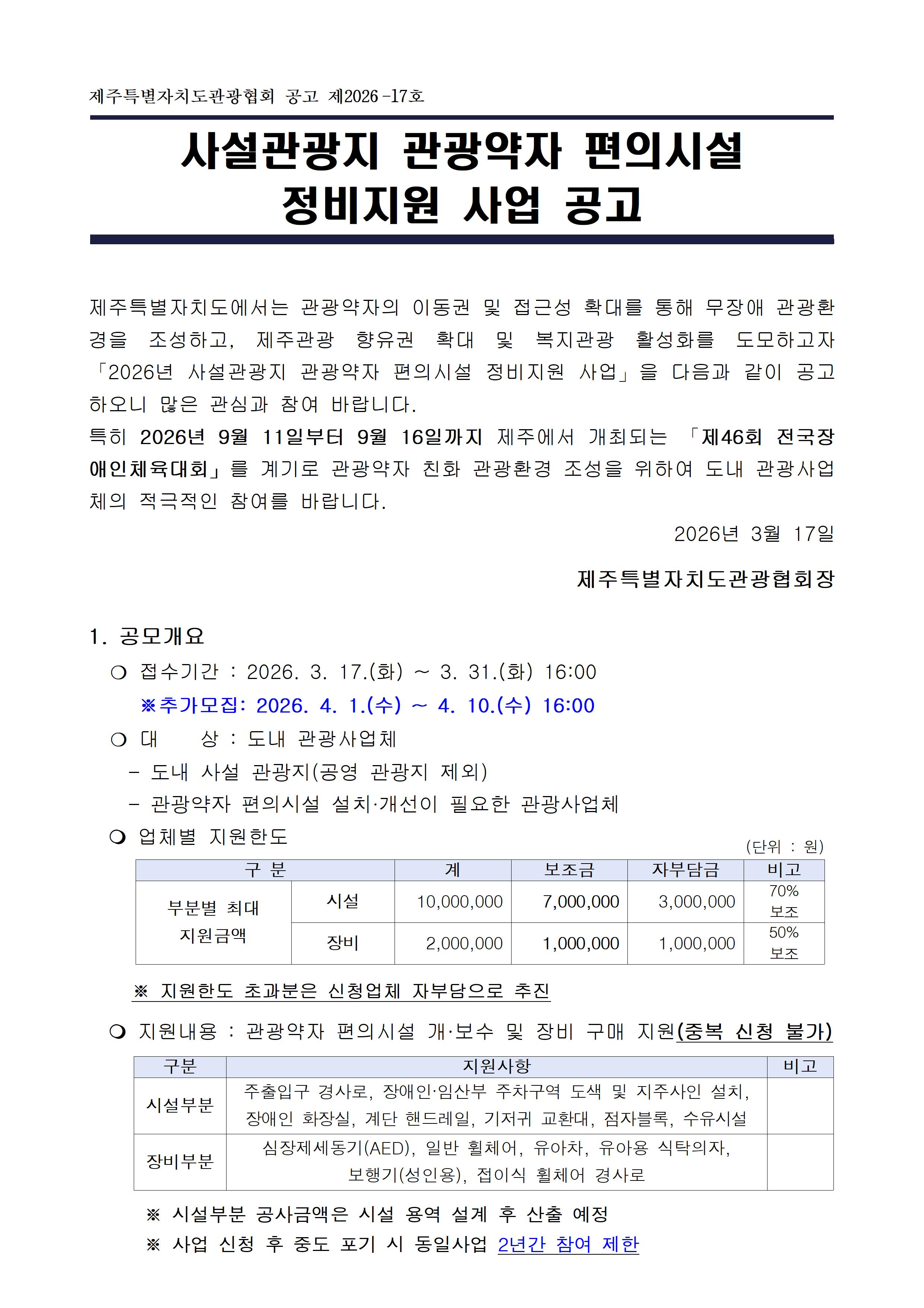 (추가모집)2026 사설관광지 관광약자 편의시설 정비 지원 사업 공고 알림