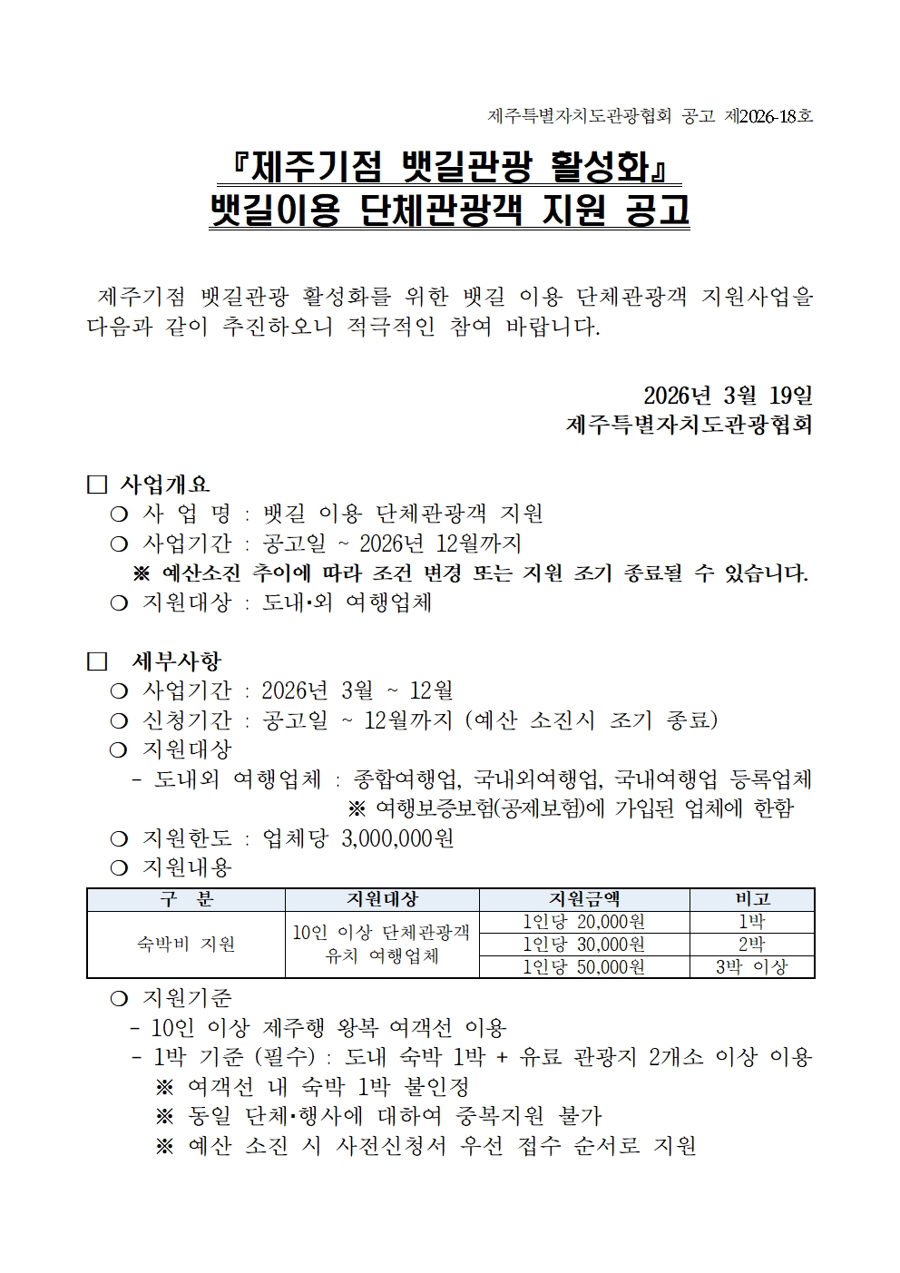 『2026 제주기점 뱃길관광 활성화』 뱃길이용 단체관광객 지원 공고