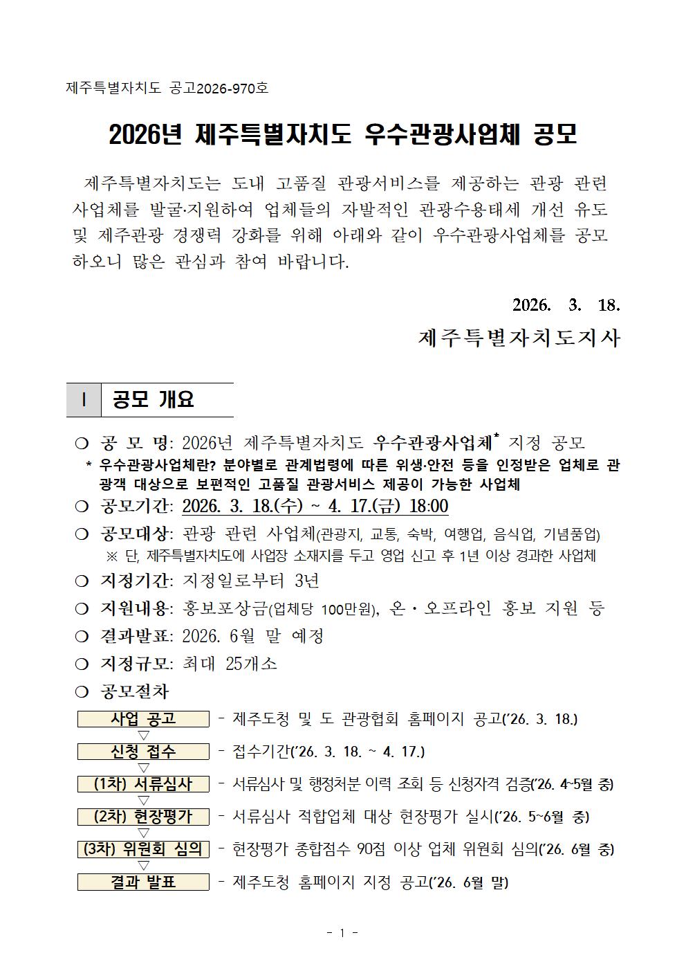 2026년 제주특별자치도 우수관광사업체 공모 공고문(일반).hwp
