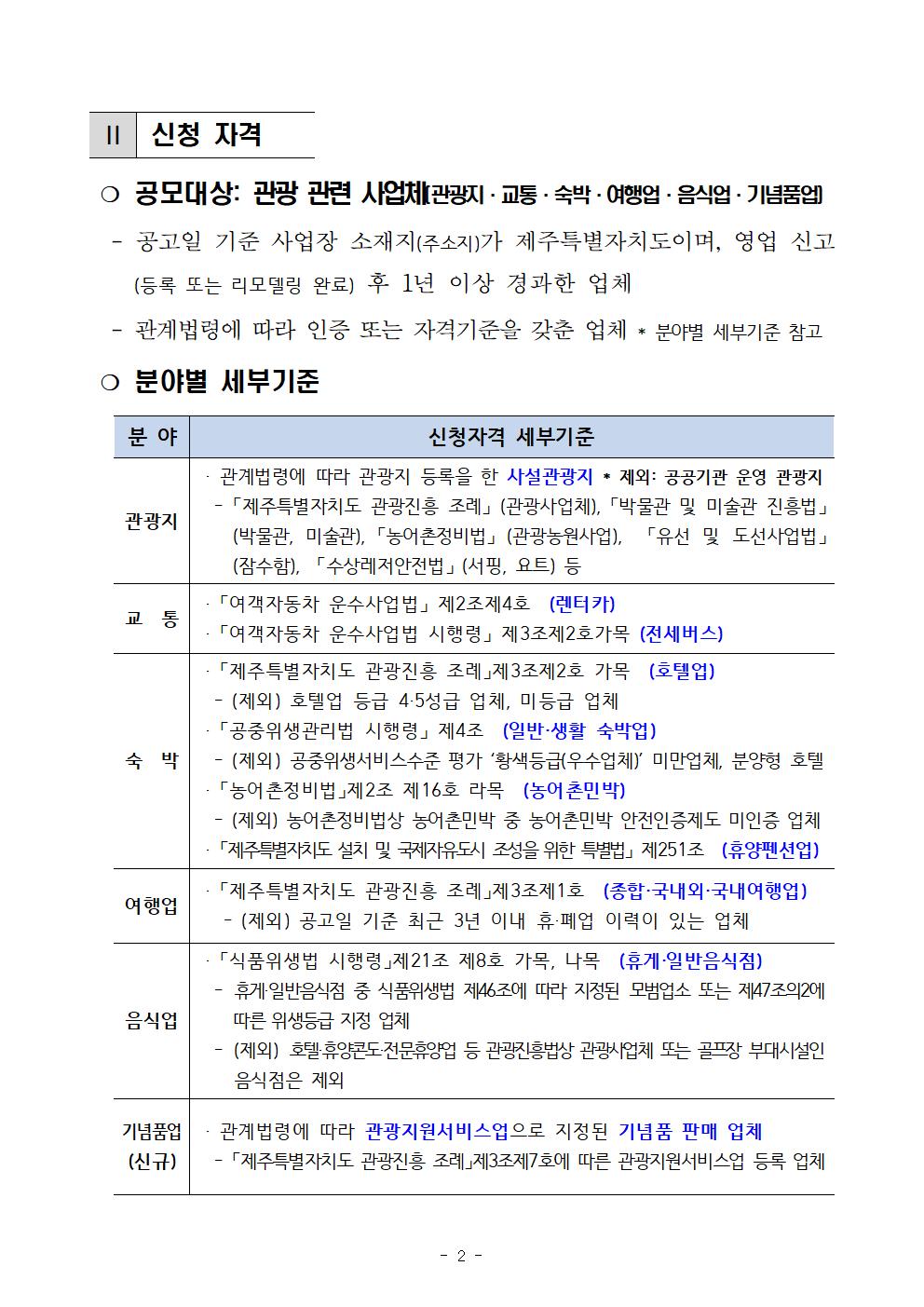 2026년 제주특별자치도 우수관광사업체 공모 알림