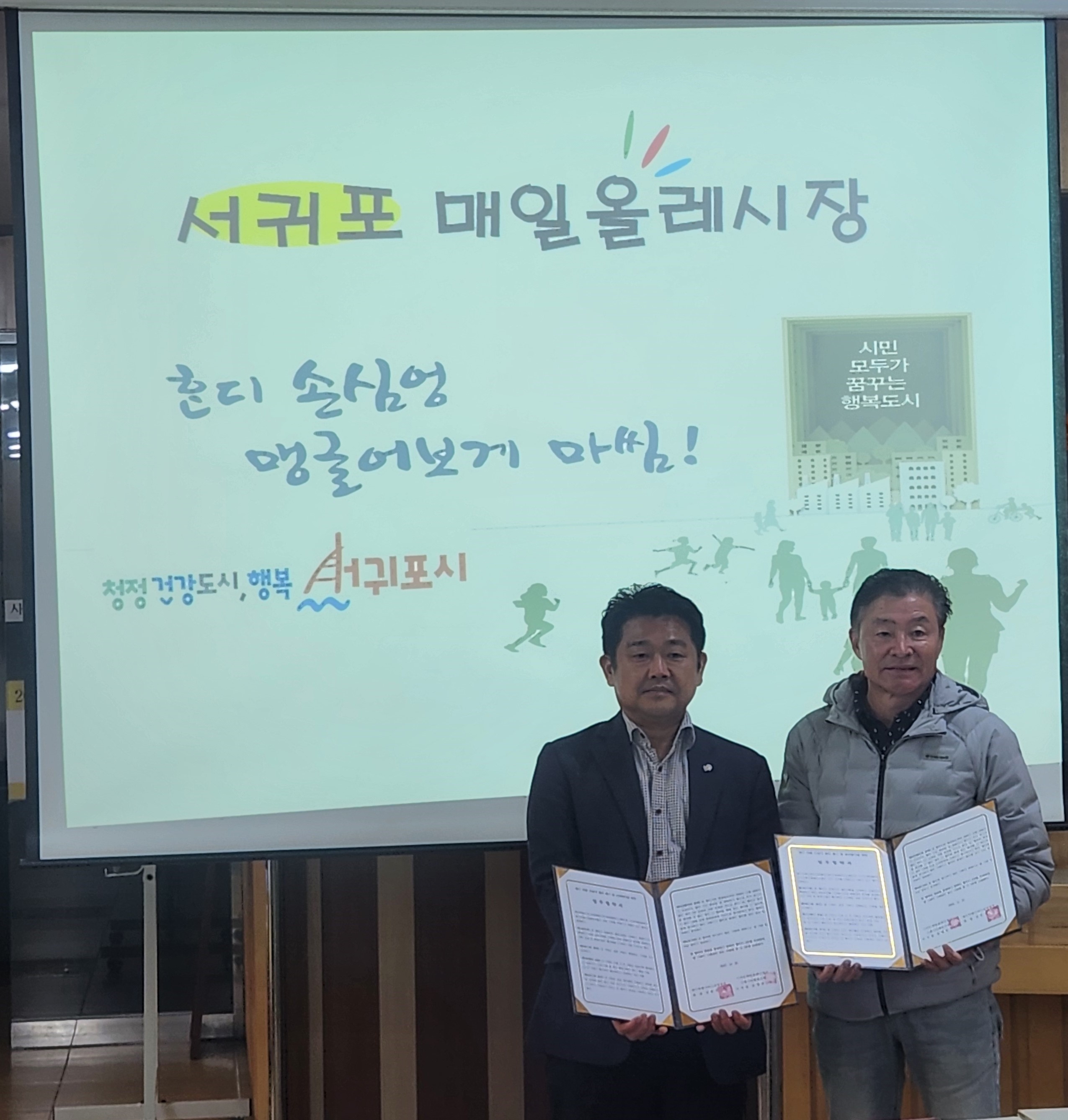 - 제주특별자치도관광협회(회장 강동훈)가 운영하는 제주관광불편신고센터와 서귀포매일올레상점가진흥사업협동조합(이사장 임병완)은 지난 11월 25일 업무협약을 체결했습니다. 양 기관은 서귀포 매일올레시장 이미지 실추와 제주관광에 부정적 영향을 미칠 수 있는 관광객 불편 해소 및 제주 관광 신뢰 회복을 위해 상호 협력하기로 했다.