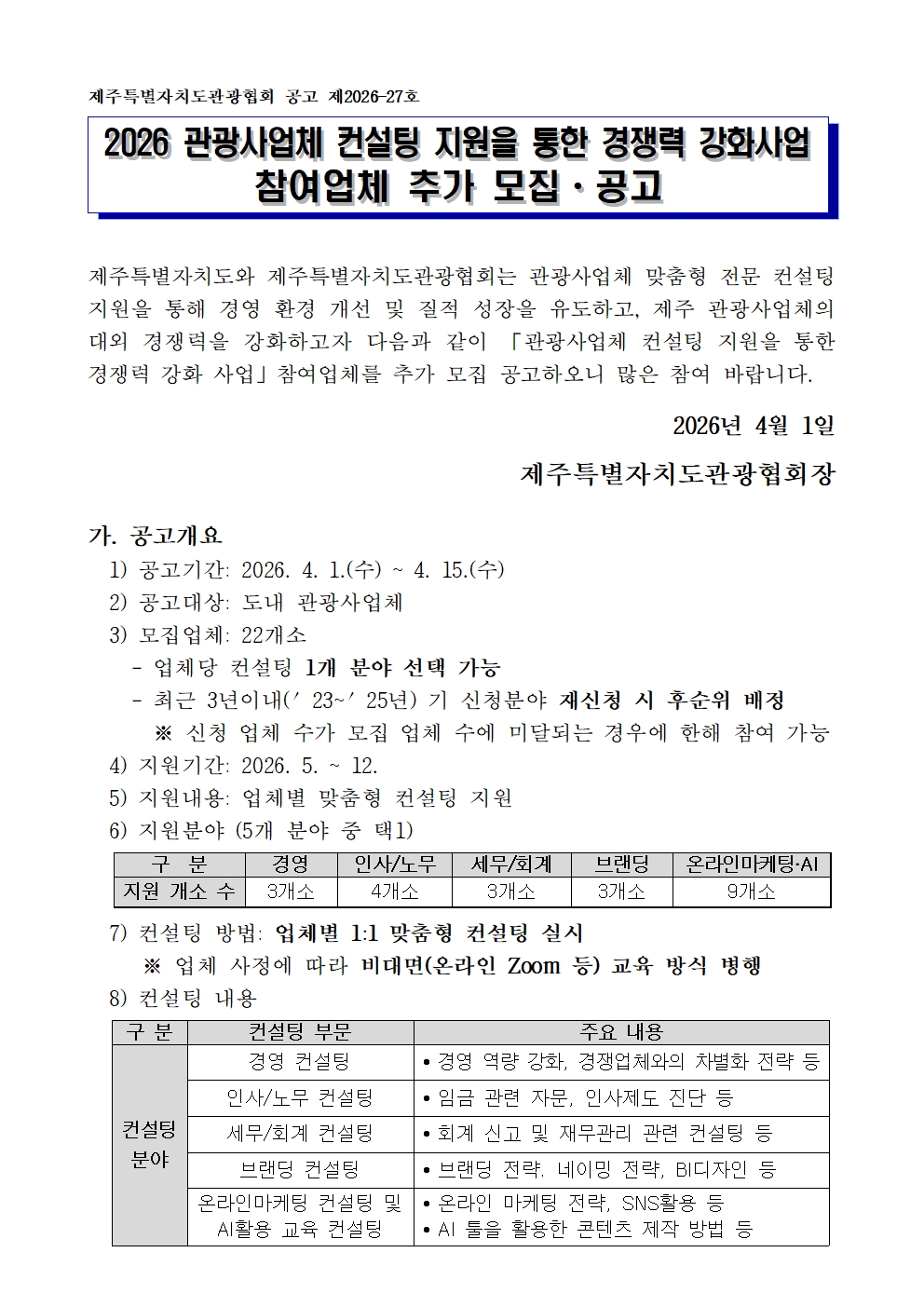 (추가모집) 「2026 관광사업체 컨설팅 지원을 통한 경쟁력 강화 사업」 참여 업체 추가 모집 공고 알림